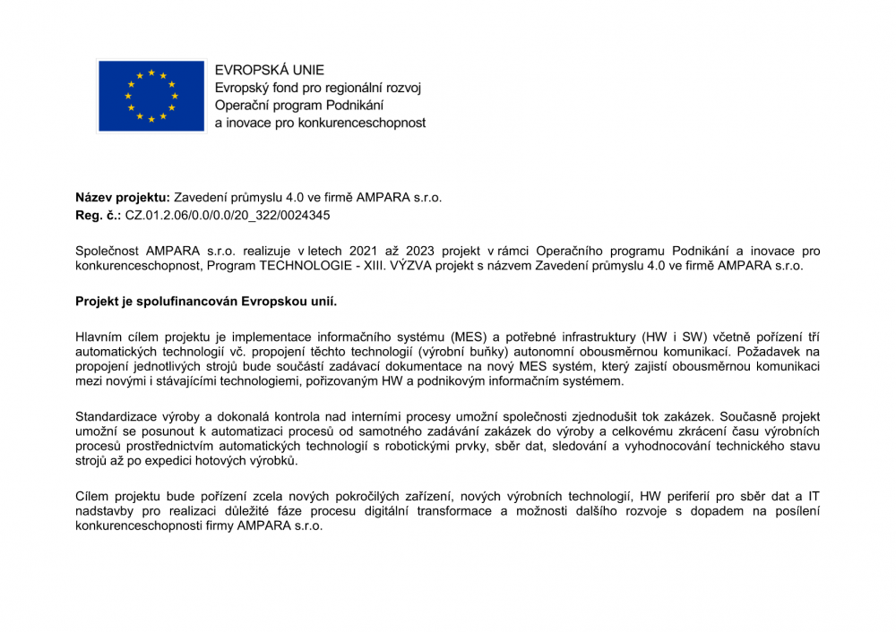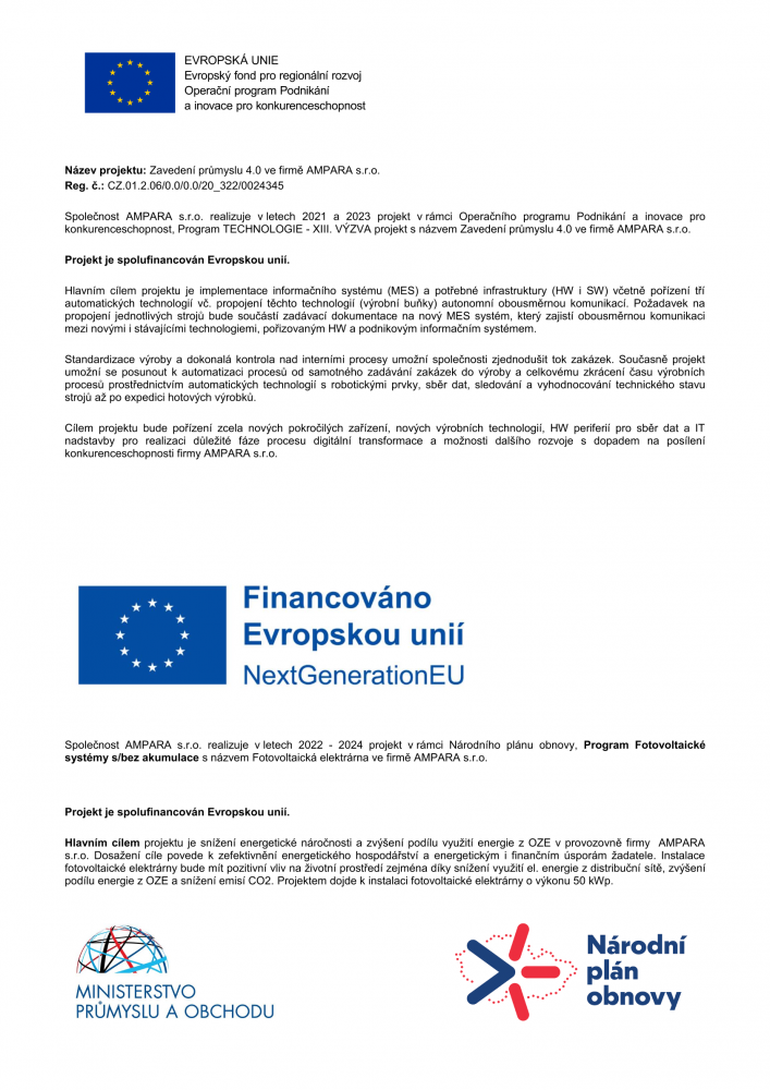 Společnost Ampara s.r.o. splňuje nejvyšší nároky na kvalitu nejen svých výrobků, ale i systému práce a v péči o své zaměstance.